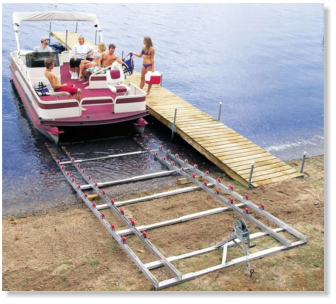 proposition. Roll-n-Go’s docking system for pontoons handles pontoons up